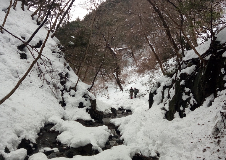 resize0041.jpg 【日 付】 2017年1月22日(日) 【山 域】 鈴鹿 【コース】 椿大神社P 9:04===二本松尾根登山口 9:38===入道ヶ岳 11:50 12:30===13:35 井戸谷下山口13:20===駐車地 15:35 【メンバー】 しのやん、 ちーたろー、 コダマ、 グー (敬称略) 歩き順 ちーたろーさんからお誘いを頂いたのですが、二人での雪山は少し不安も有り、 グーさんと、YAMAPの しのやんさんをお誘いしました。 椿大神社の駐車場に集合すると、登山者は下の駐車場へと案内があり、 堰堤までの林道は通行止め。 全員で下の駐車場に移動。 遠...