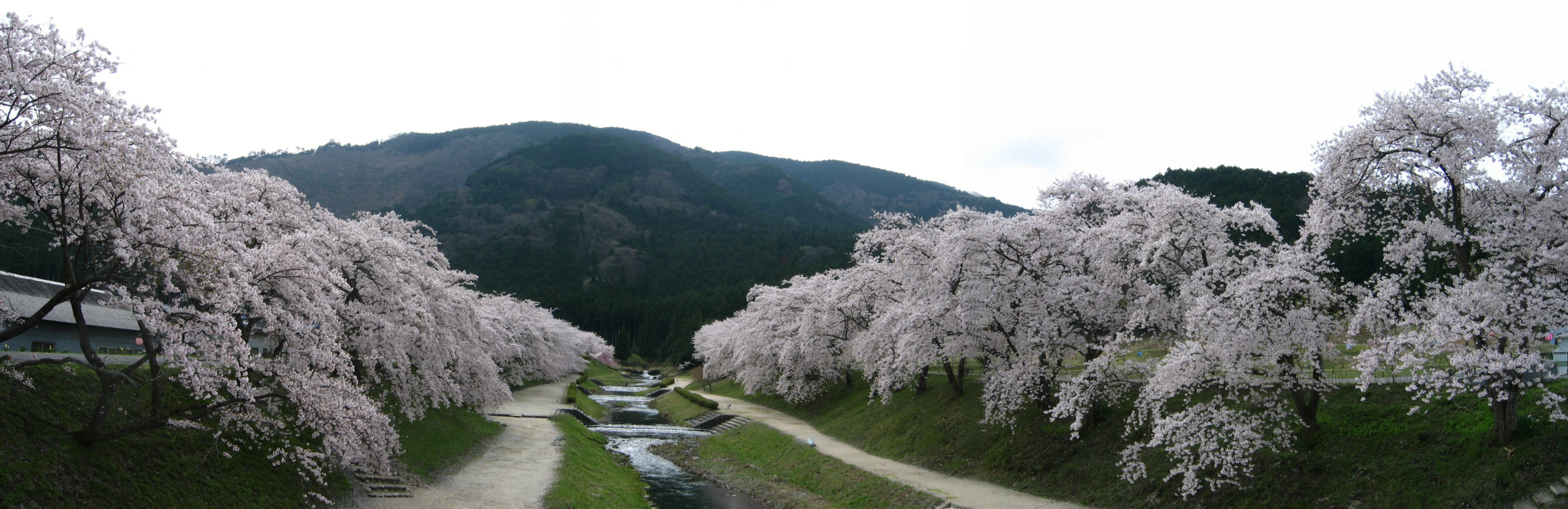 2006年4月に御所平に登るためにたまたま鮎河を通り、丁度満開のうぐい川を見ました。川沿いにたくさんの桜があり、とてもびっくりしました。