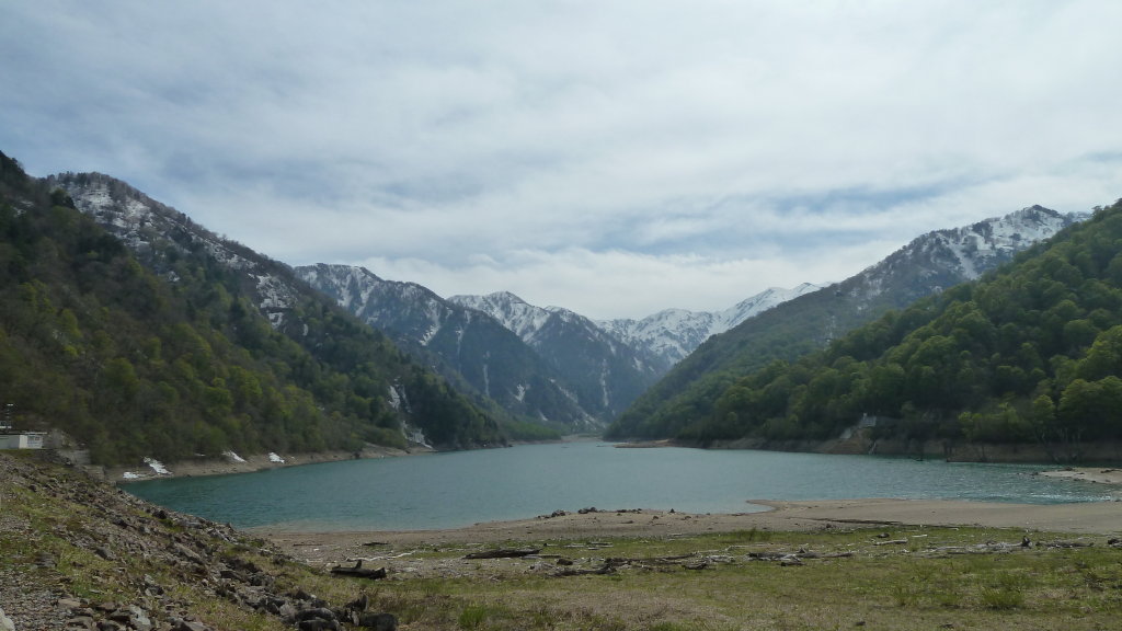 スキーを楽しむのはGWが限界でしょう、それにしても雪が多い!湖岸に写ってる白いものって、まさか雪?