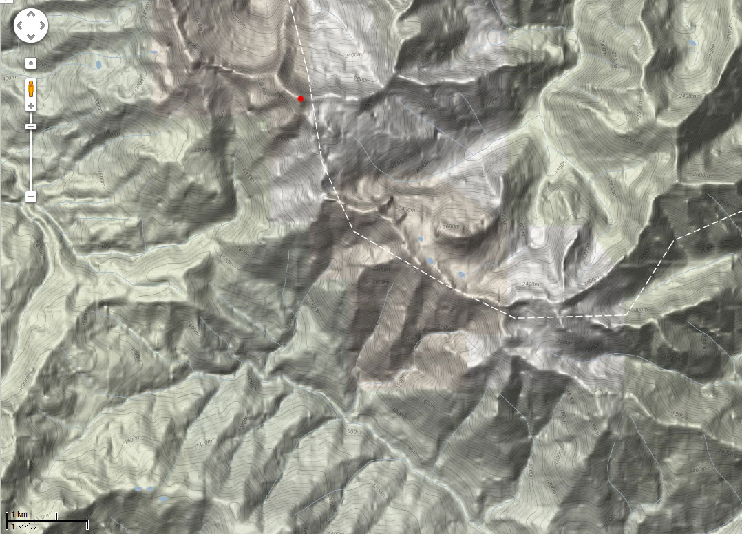 グーグルマップに等高線表示して山座同定してみました。