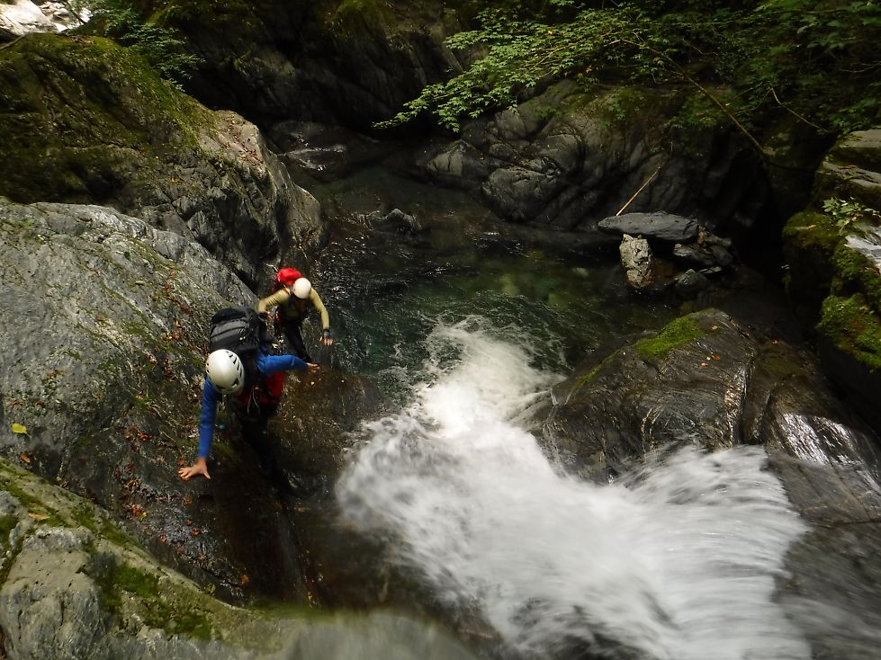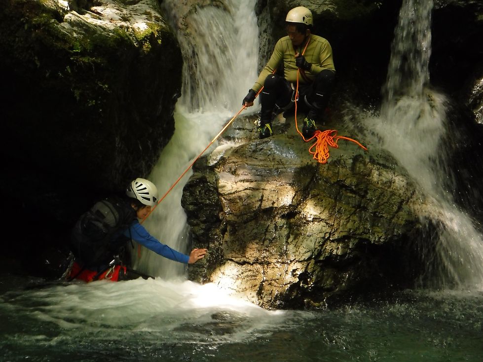 木梶ゴルジュでグーが足を滑らせ水没した時はむんずとつかんで引き上げてもらいました。