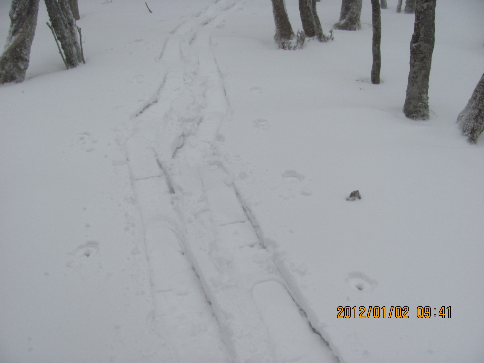 そうそう人の歩いた跡は歩きにくいでしょう?、それに壺足の方のトレースは潰さない方がいいと思います。トレースの無い所を歩き回るのはほんと気持ちがいいですね、冷たい日はいやだけど一つだけ思ったことは、ツボ足だと他人のトレースを辿り勝ちになるけれど、スノーシューを履いてみると新しい雪を求めて歩いてしまうこと。