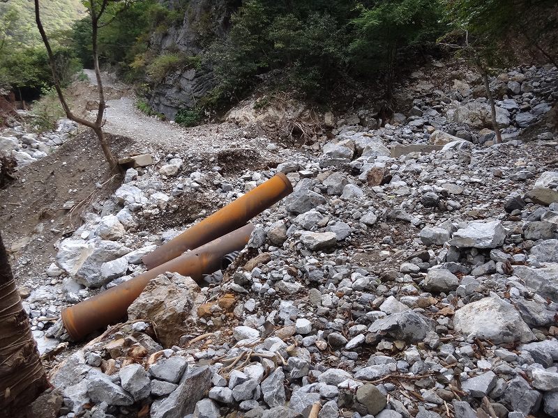 屏風岩あたりのコンクリートの道もところどころ谷に流されて、その形をとどめていません。