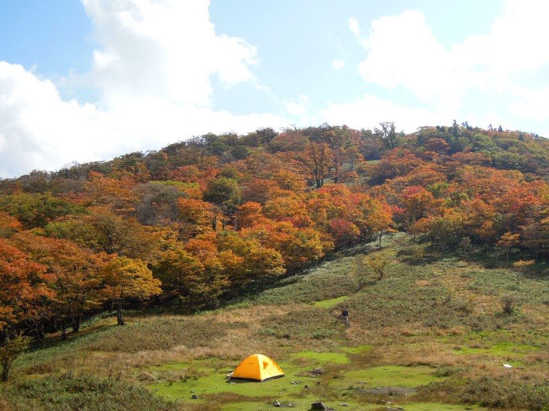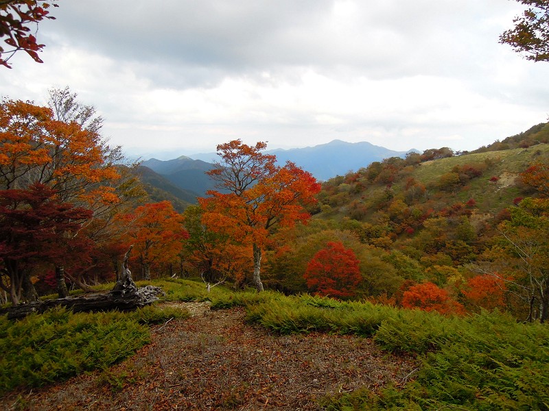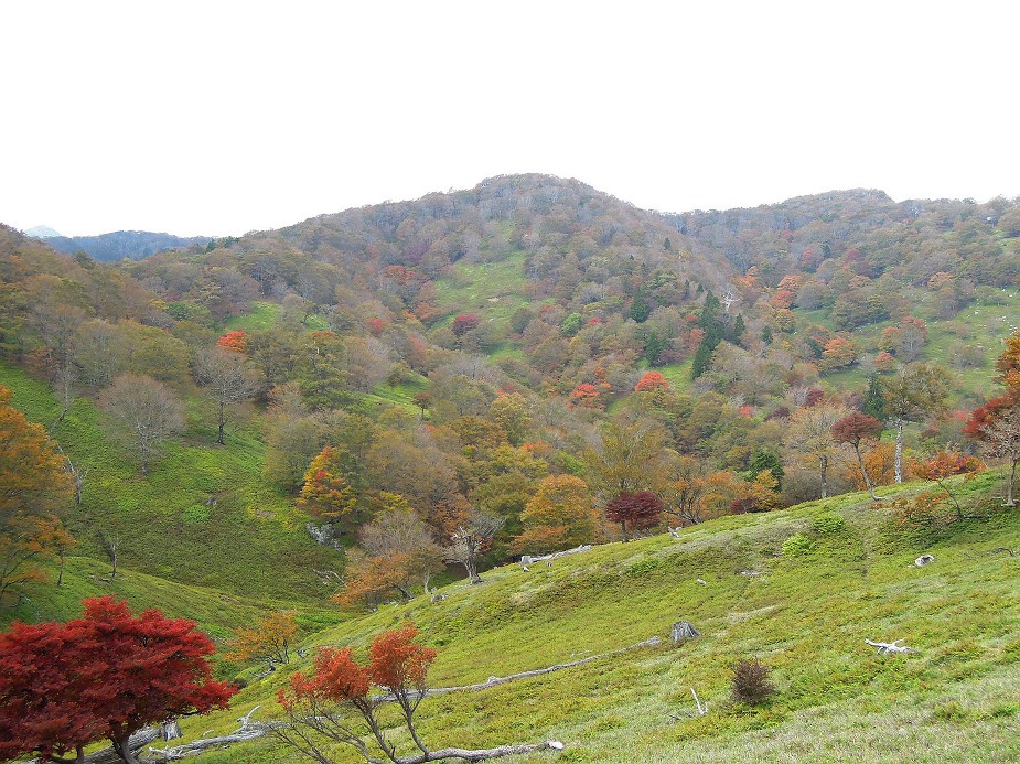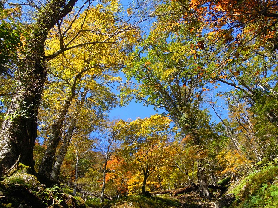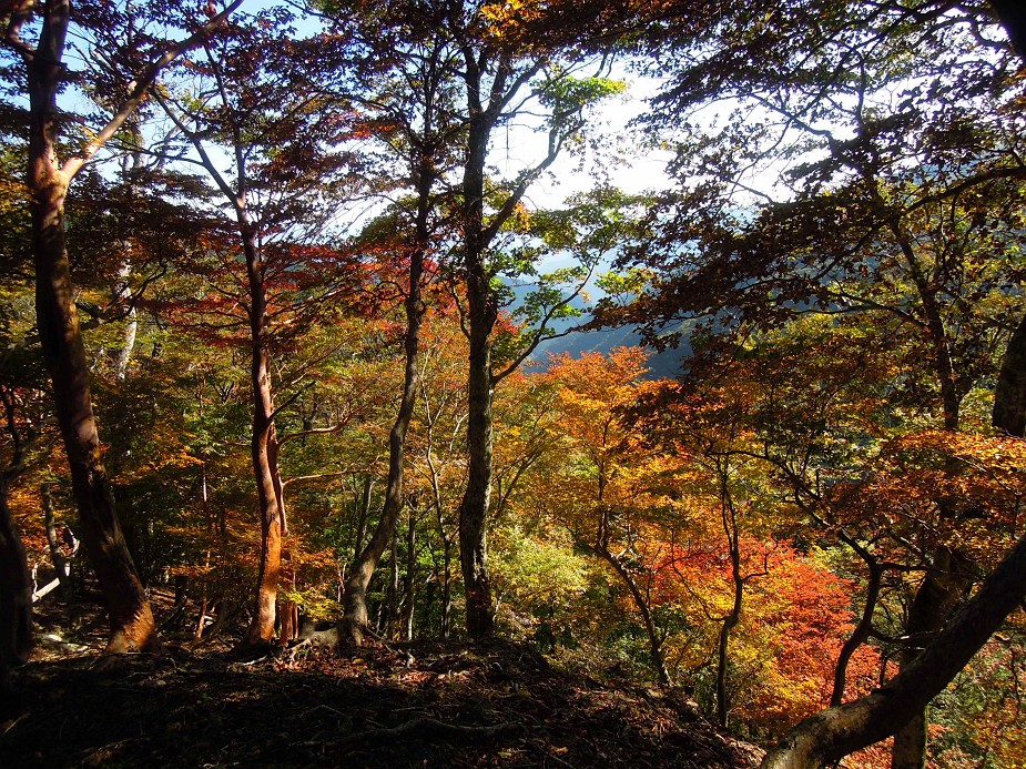 全般的に、よく紅葉したカエデ類はそれなりに数はあるが、盛りはこれから。稜線のブナの黄葉はこれから。