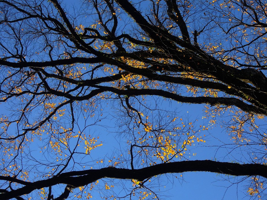 せっかく今年はいい紅葉が見られるのだけど、この辺りは葉を落とした樹が少し目立つのが残念です。