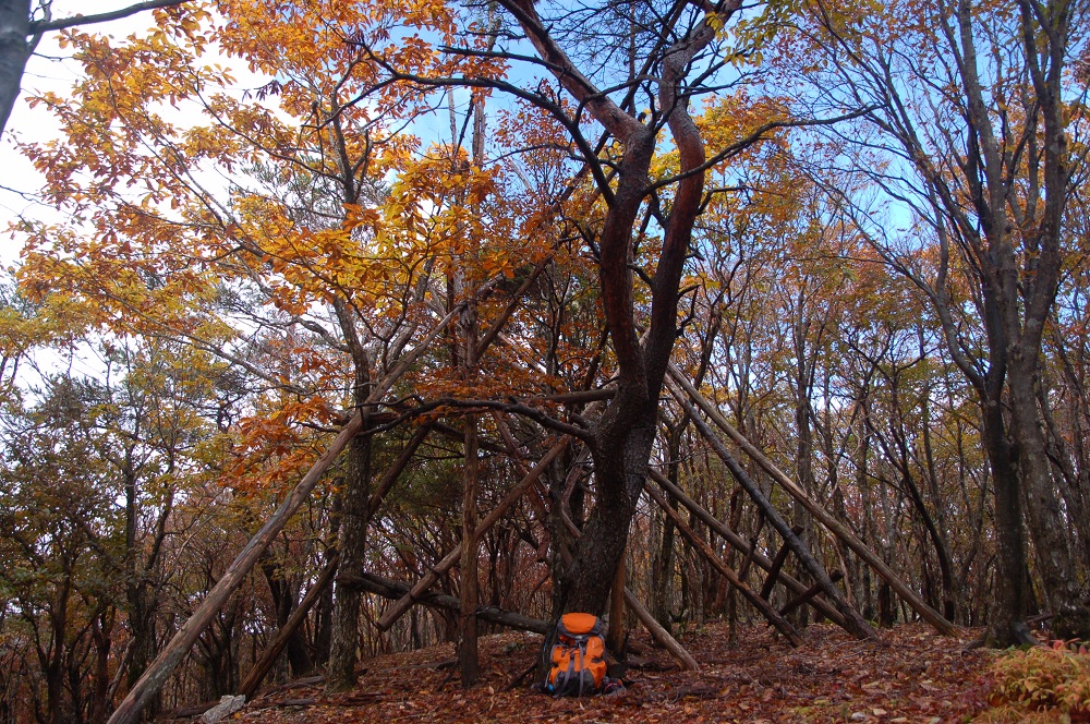 ちなみに場所としては、木屋谷の左岸斜面のほぼ稜線近く、カツラ谷林道の終点のチョイ手前あたりの小ピークで、すぐ先に木梶山と馬駆辻への分岐の山道があるところです。