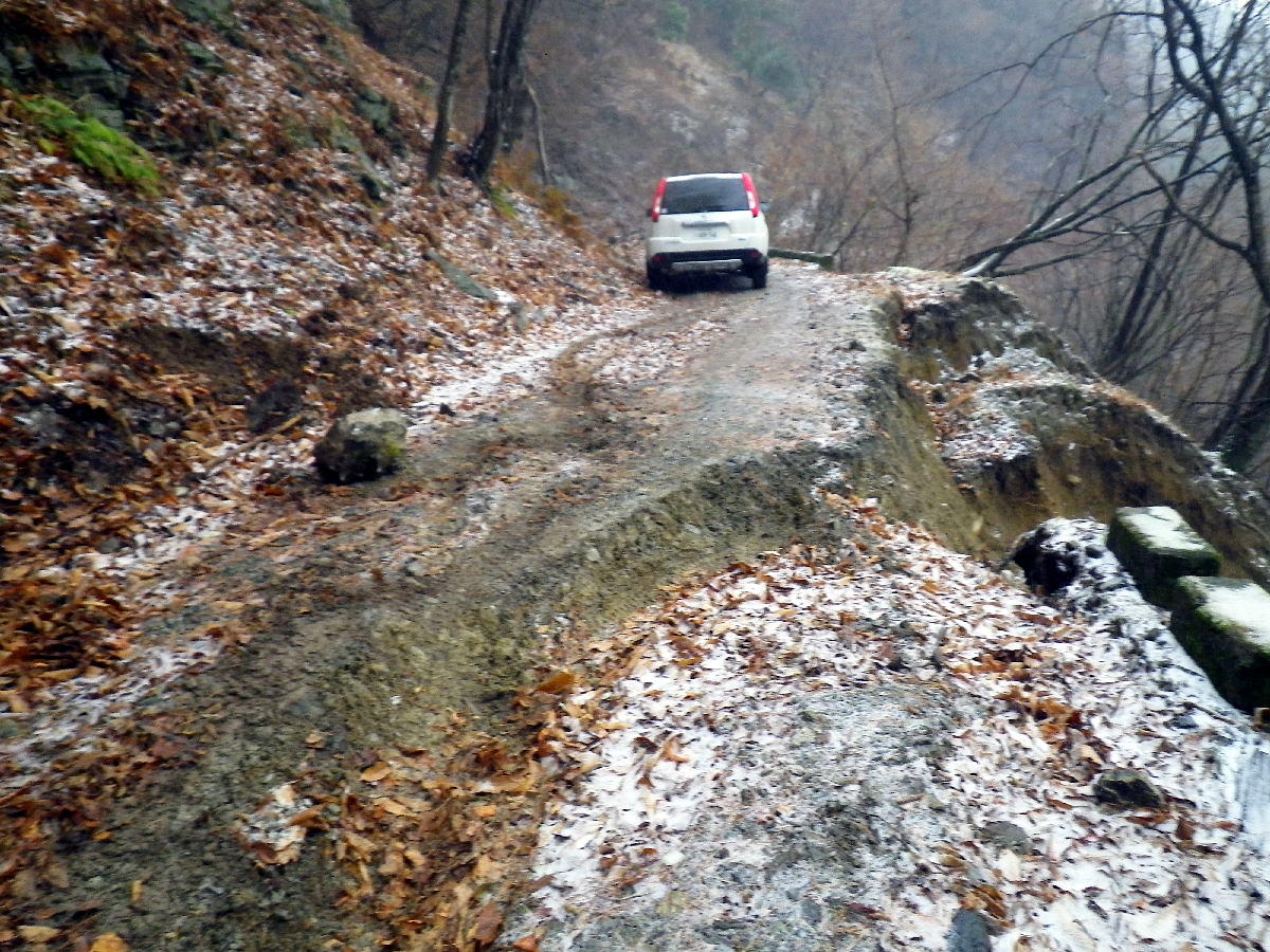 この林道の亀裂の走っているところは、ちょうど万歳橋の上あたりじゃなかったかな?