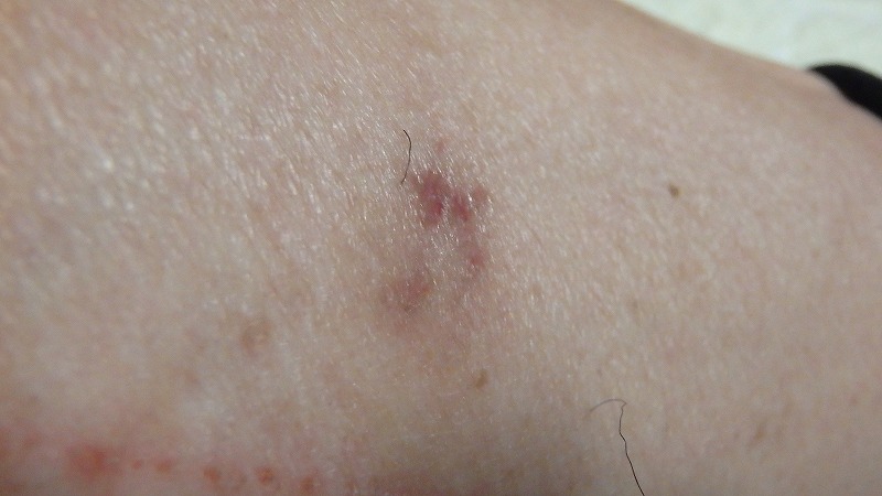 ところが、はたと気付いたことがあった。5月に台高に行ったあと、足のふくらはぎに種痘の跡のような赤斑ができている。痛くも痒くもない。