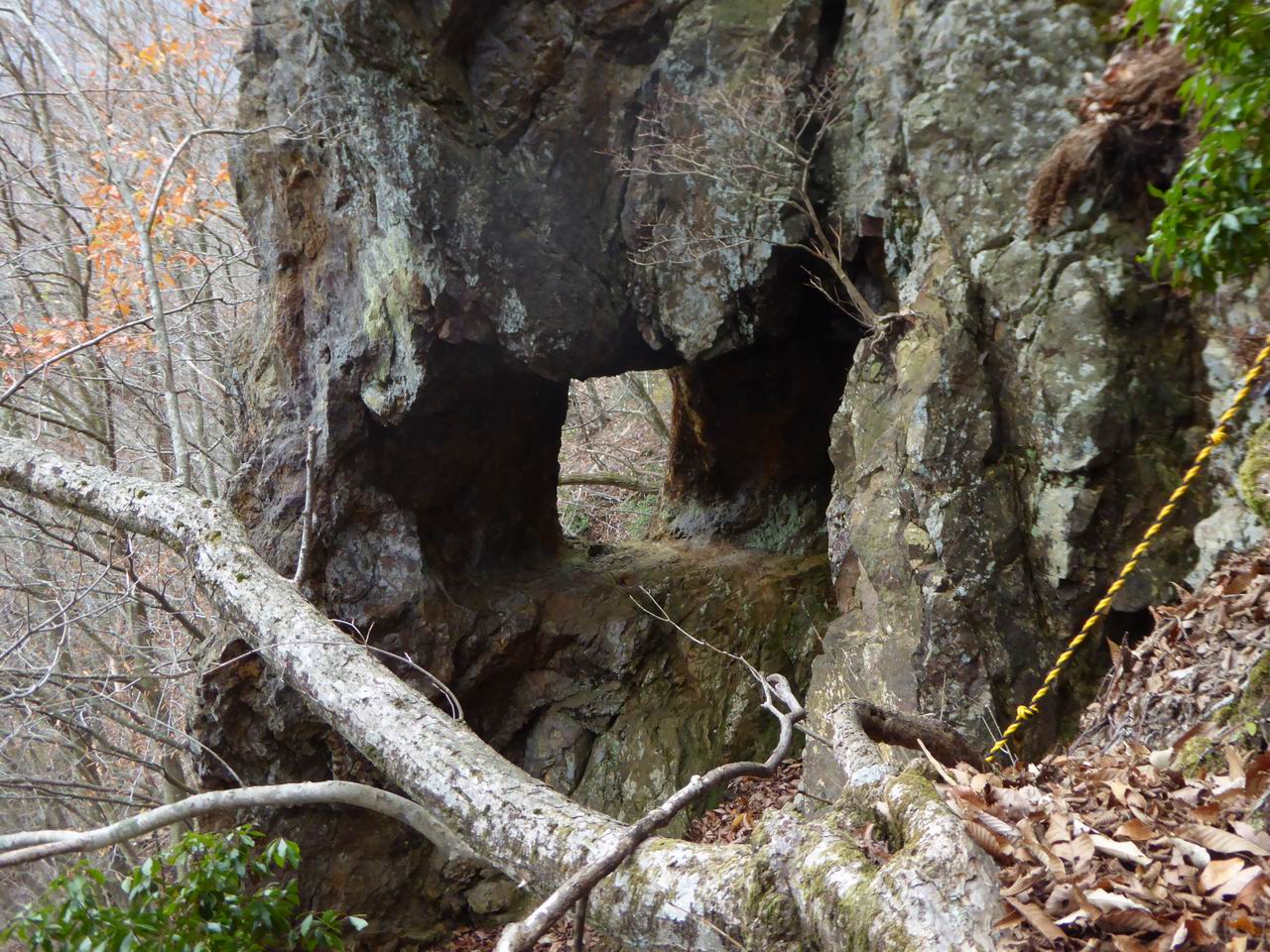 見つけて少し入ってみると、何やら岩壁に穴が空いているのを見つけた。「これは何だ?」と思って近づいてみた。