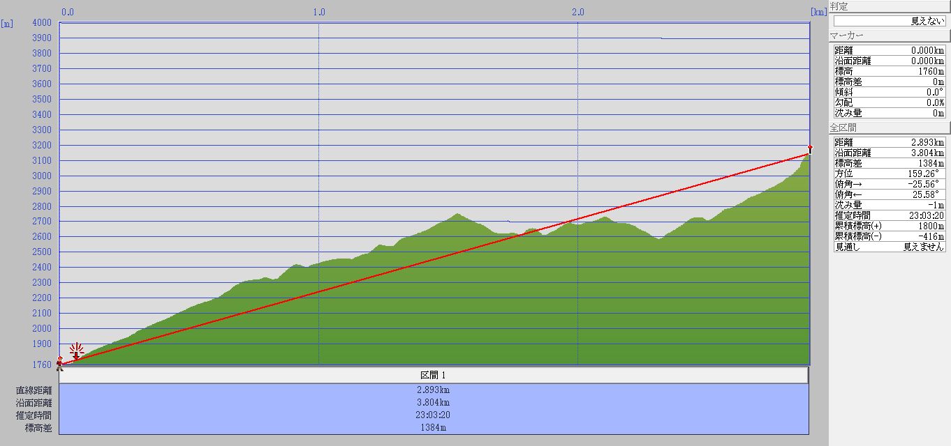 地形図を見るとジャンダルムではないことは明らかですが、カシミールの機能を使って検証してみたくなりました。
