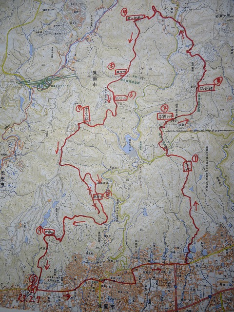 しようと考え、箕面9山大周回を考えました。考えたもののコースがなかなか決まらず、どのくらい時間が