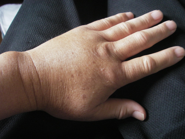 20年ほど前にスズメバチの大群に襲われて全身蕁麻疹が出たことがありますが、それ以後山で刺されたことはないし家で刺されたかどうかは覚えていません。20年前の蜂毒の抗体が残っていたとは思えませんが、蜂毒に対する過敏な体質になっていたようです。