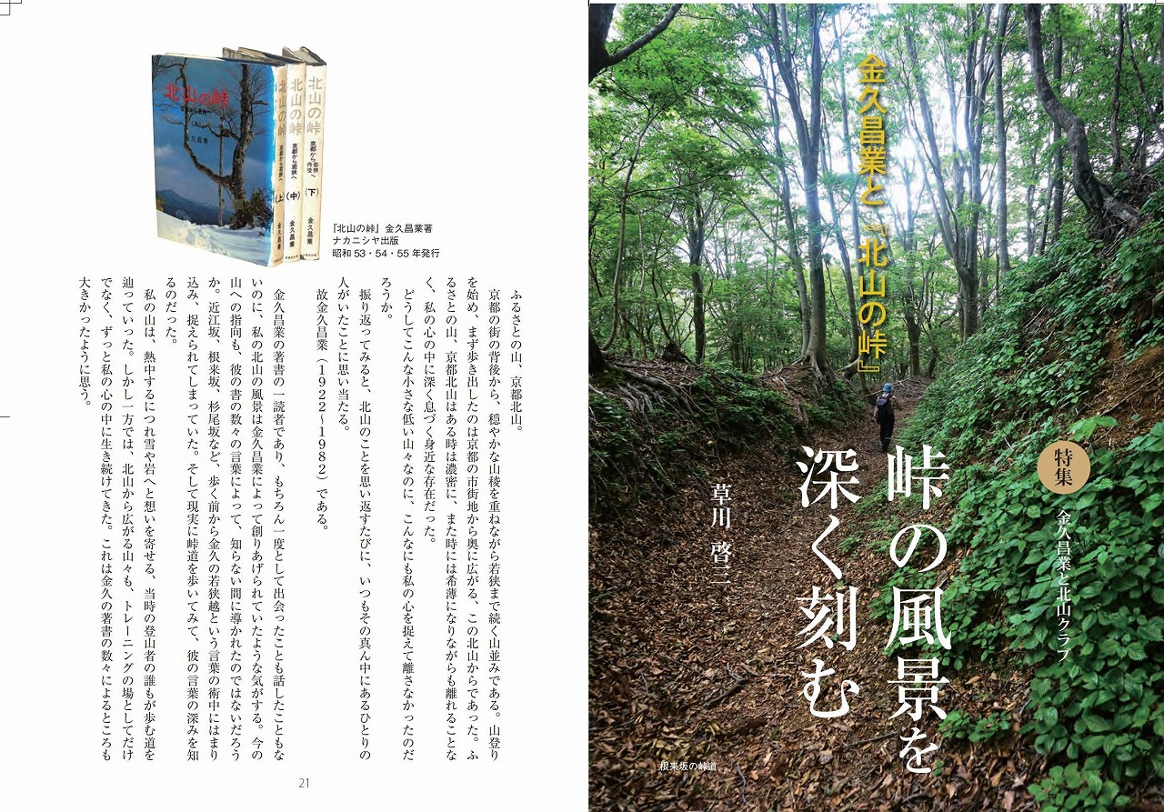 今号の特集は、これ無くして京都北山は語れない、金久昌業と北山クラブの思い出と考察です。
