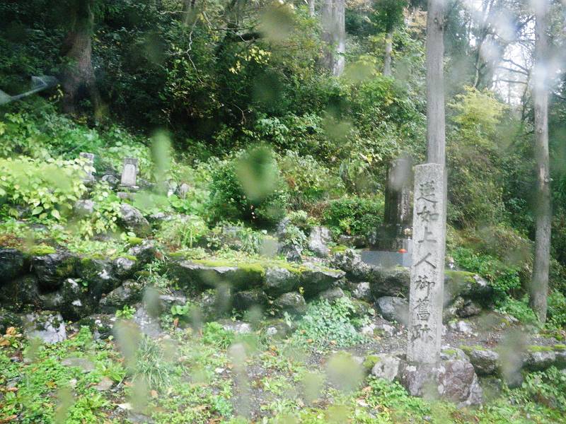 さてと、もう一度、芋ヶ平に下り返そうか。所要時間と走行距離を確認しながら下る。天候に恵まれれば快適なダウンヒルになるだろう。峠道はゆるりゆるりとカーブしながら紅葉の山肌を縫って走る。難なく芋ヶ平まで降りた。蓮如上人遺跡まで車を上げてみる気持ちの余裕も出てきた。