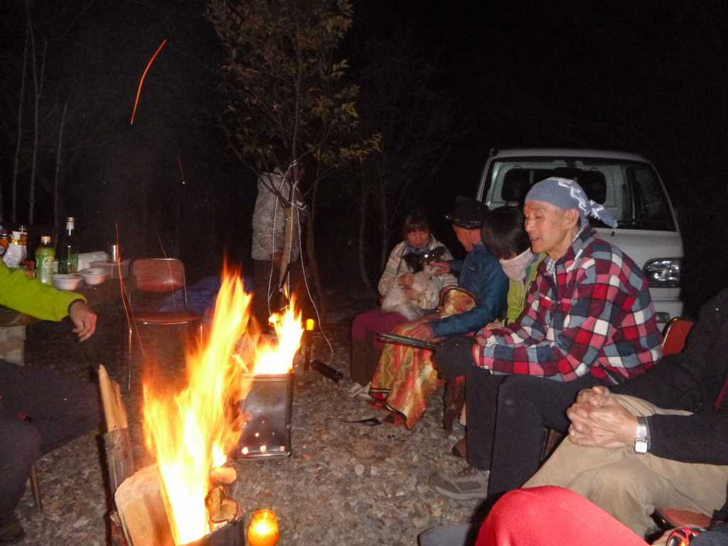 オボロ月の暖かい、好い夜でしたワン。焚火の温かな気持ちの良い春夜でした。