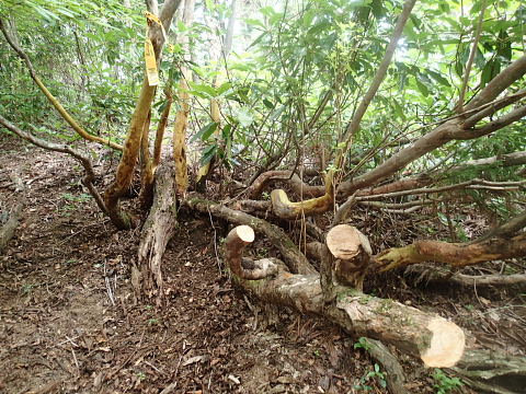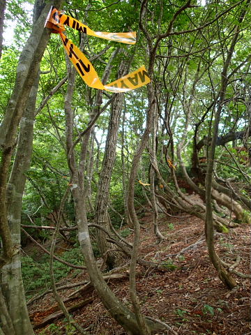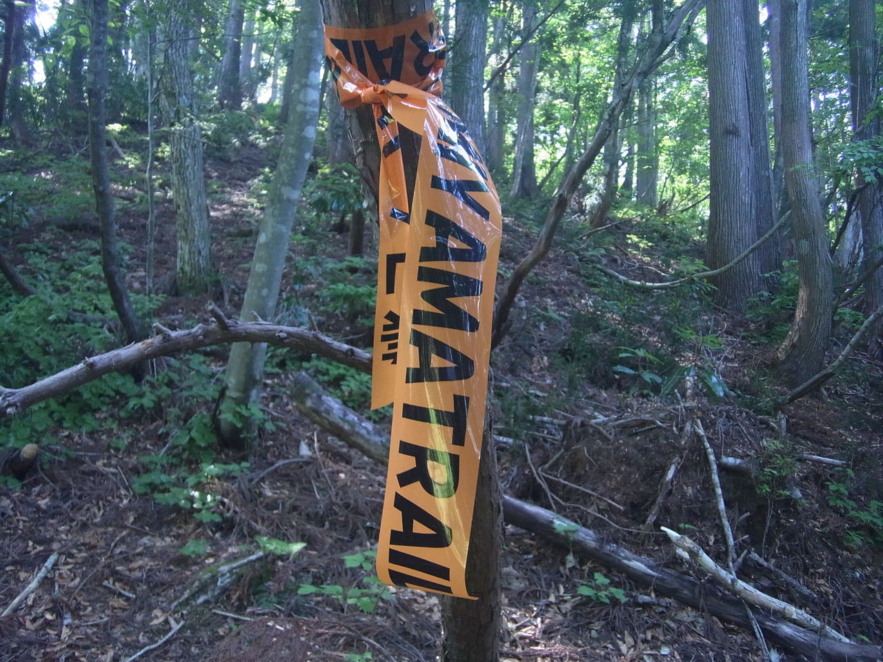 いま、高島トレイルの二の舞になってしまいそうな勢いで、研究林の許可も無く黄色いテープが尾根に沢山付けられて、枝をどんどん切り落としてトレイル道を作り始めたのです!