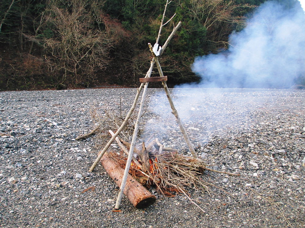ランチの後は懐中しることコーヒーで仕上げだ。お湯を沸かそうとペットボトルからコッフェ