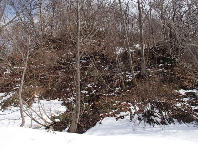 中途半端な雪がかえって邪魔だったが、そんな苦労も長くは続かなかった。ヤブの向こうにぼっかりと雪面が見えたらその先からも歩きやすい雪面が続いていた。