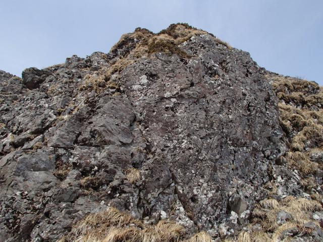 岩の表面にモシャモシャの草みたいなのがへばりついているので、威圧感は和らげられてますね。高度感は一級品ですが