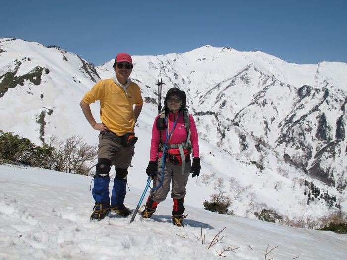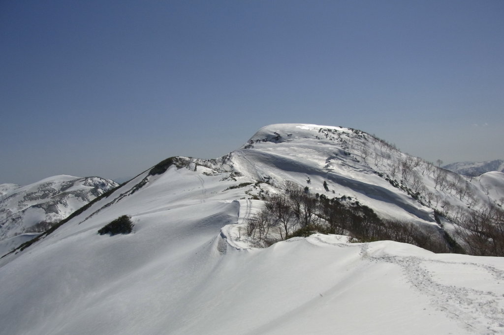 5年振りの願教寺山。お百度まであと91回である。ここまで来れば三ノ峰(打波谷の頭)が大きい。黒坊稜の核心部はさすがに黒く、よくあんなところを登ったもんだと思わせる。