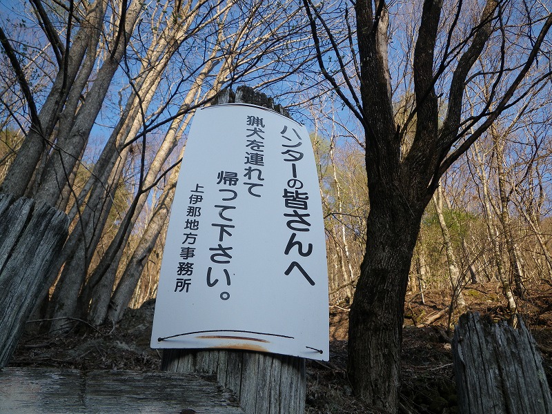 孝行猿の碑を見るとすぐ林道を横切る。適当に林道を歩いたり山道に入ったりするうち、遙か遠くから「こちらは広報伊那市です。」という広報車のアナウンスが聞こえてきた。耳をそばだてると「高遠の行方不明者は無事発見されました。ご協力ありがとうございました。」と聞こえた。ギョッとする。私も気をつけなきゃ。