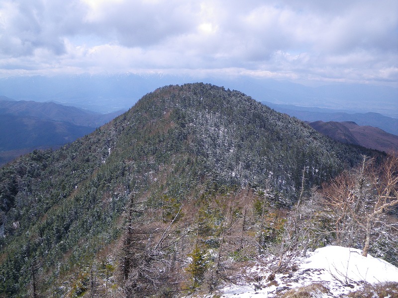 駒ヶ岳なら駒を進めたんでしょうが、仙丈ヶ岳ですからね。この尾根を仙丈ヶ岳まで辿るのは、それなりの忍耐力が必要になります。keikokuさんが二年ほど前に、この尾根を仙丈ヶ岳まで詰めあげてますが、彼の超人的な体力をもってしても、その長さに参った・・・って言ってましたよ。本谷山北西尾根を踏破したんでひとつ駒を北へ進めたわけですね。