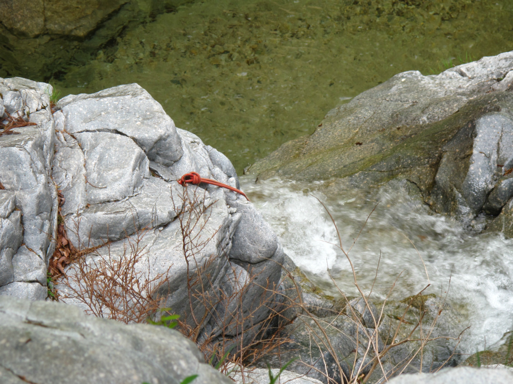 その赤いロープは見たことないですが、水流の横に残置されてるんでしょうか?