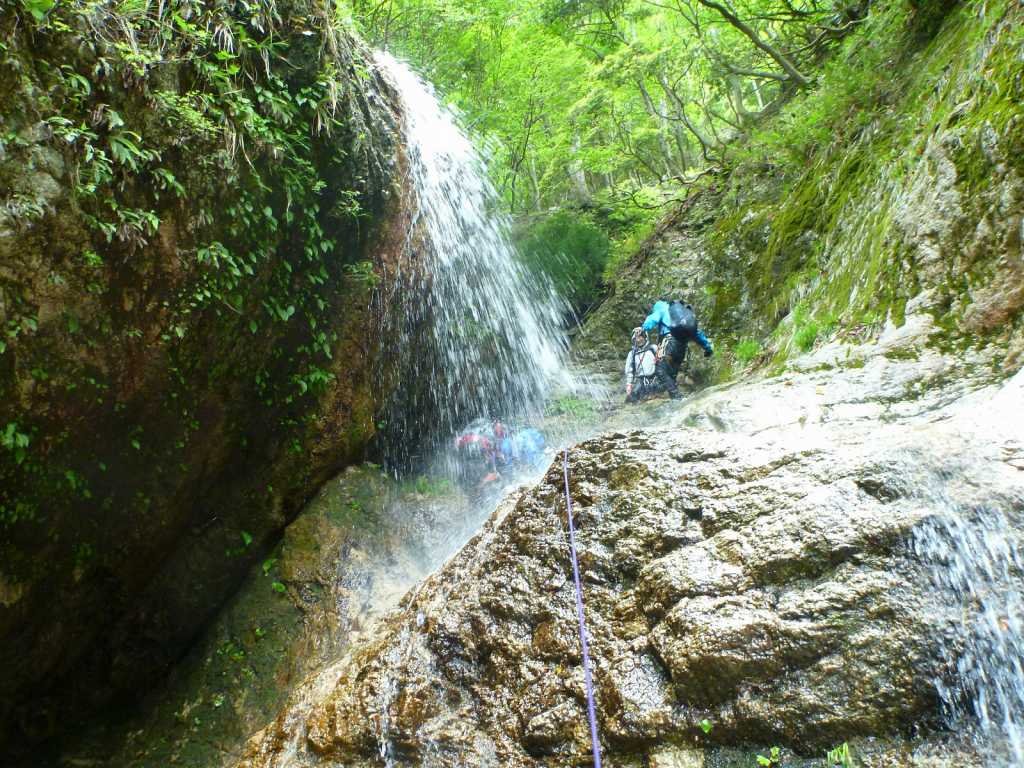 中ノ谷は登攀系もはいってなかなか楽しませてもらえる谷だった。とくに最後の30m大滝の登攀はしびれるくらい楽しかった。自分は本当は登攀系が大好きなのだと今まで知らなかった自分に目覚めた思いだった。たろーさん、えっちゃん、michiさん、ありがとうございました。また次回もよろしく。