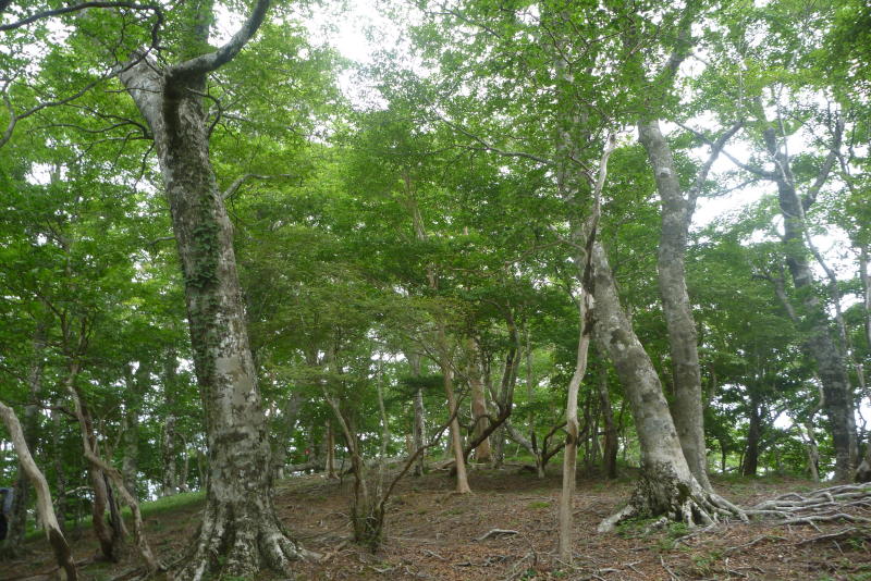 ゆっくりと山頂のひと時を楽しんで下山にかかる。勝手知ったる登山道は、矢納谷の時と違って不安要素はない。素晴らしいブナ林を愛でながら、ナンノキ平経由で一散に下る。