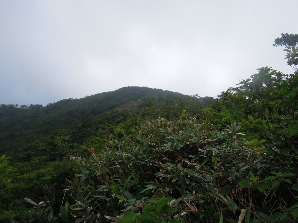 きたが、もともとヤブコギで濡れているのでかまわず歩く。鞍部までは下りのため比較的楽だったがこの後が問題。そう思いながら