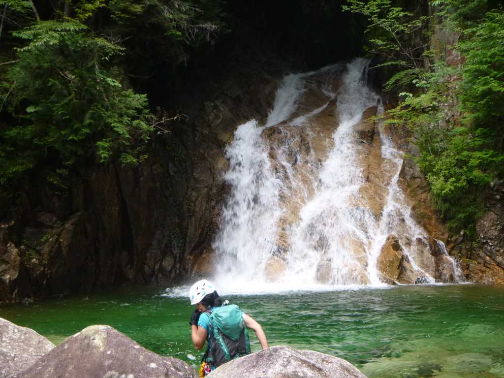 昨年行きましたが、一か所、よく滑る平均台みたいな岩のリッジを渡り、流芯を左岸からトラバースする所がイヤらしかった覚えがあります。