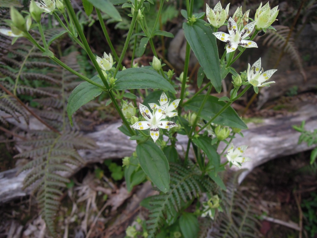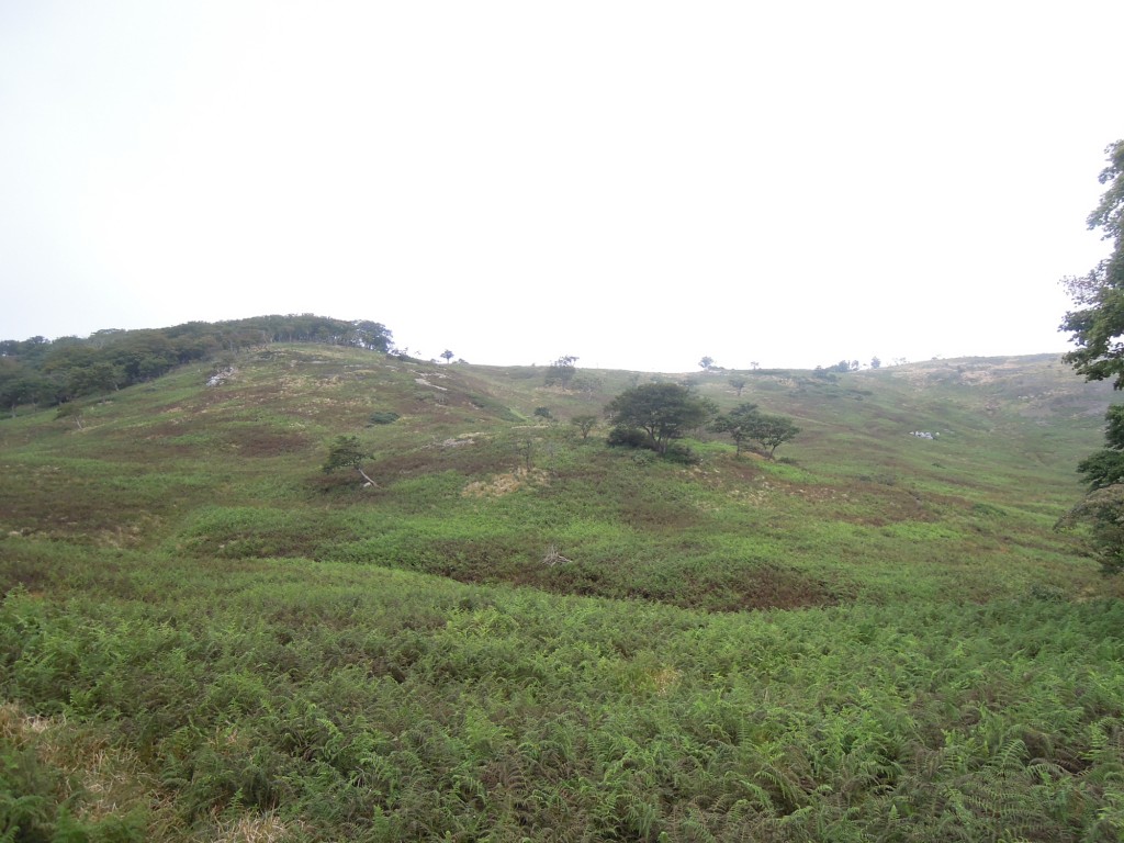 北上開始。道はどこでも歩けるとはいえ、シダ類がずいぶん繁茂していて歩きにくい。この時期はアケボノソウが見られるはず。
