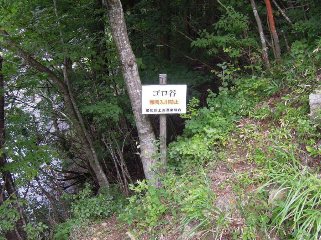 橋の袂に車を置けるいいスペースがあり迷わず駐車。そして出発である。先ほどのゴロ谷の標識には無断入川禁止とある。