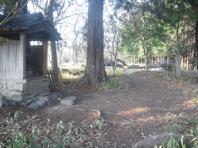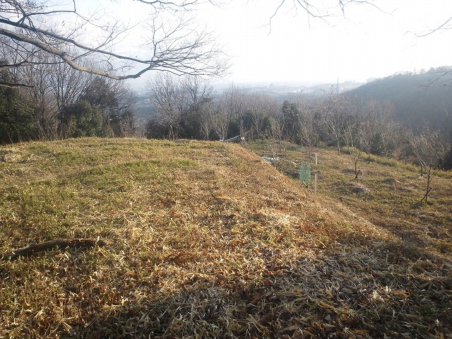 山頂には小さな祠と城山城跡(背面には昭和三年)と書かれた石柱が立っており,本丸とその下の二の丸?の曲輪はかなり広く,相当な規模を感じる,確かに三方は急崖のようで,大阪方面の眺めもよく,城を構えるにはお誂え向けの地形である.
