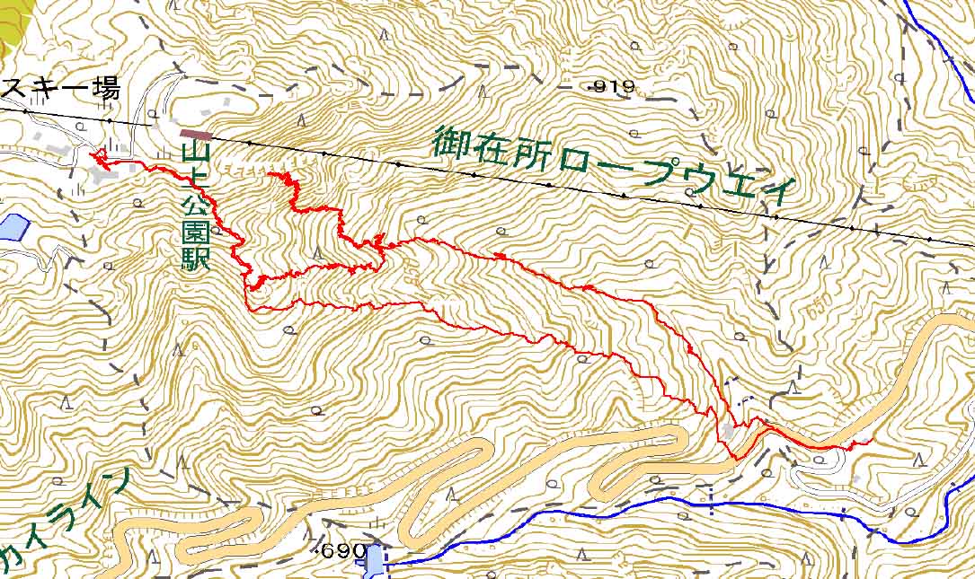 今日の山歩きはもう満喫した気分なので,籐内沢での尻セードはやめにして,一の谷新道をそのまま下る事にする.このルートは仕事の速い道なのだ.案の定,1時間ちょっとで御在所山の家に降り立った.