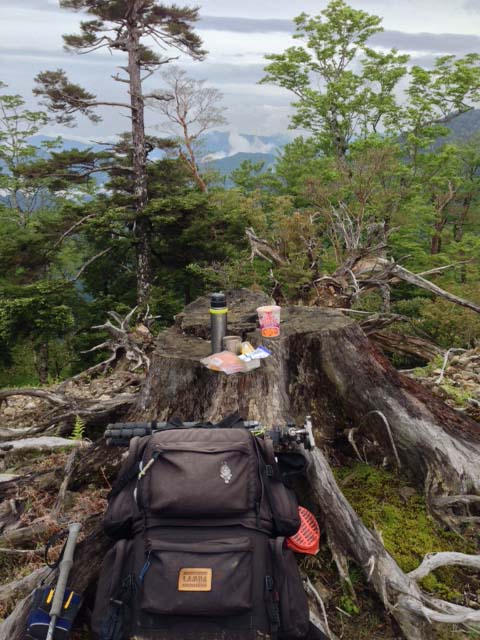 嵓を巻いて辿りついた小広場で一本入れる。