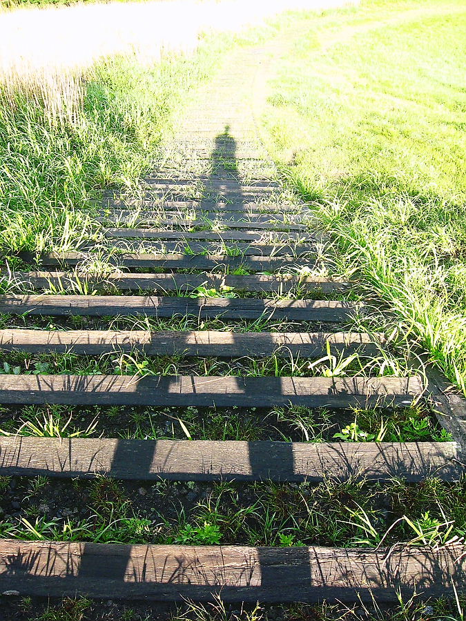 背からの太陽が緑ちゃんの足を長く写すよ、足長緑ちゃんだ。