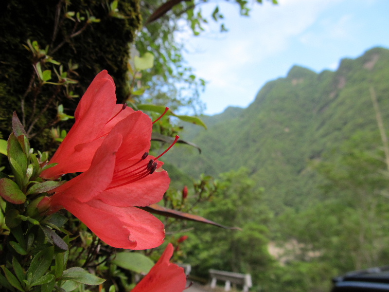 古光山登山口では強い雨が来た、空は暗い雨雲だよ。ヤメたまた来ればよかろう。