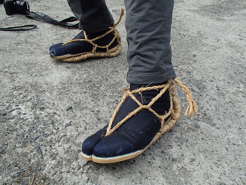 ム!ム!ム~!渓谷さんの足に注目。なんとワラジではないですか!