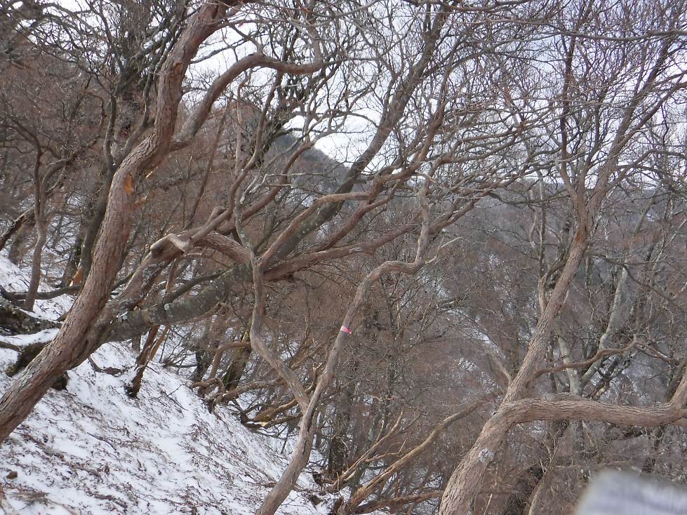 谷を離れ斜面を登り縦走路に乗ったが、西風が冷たい。