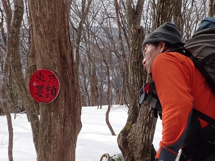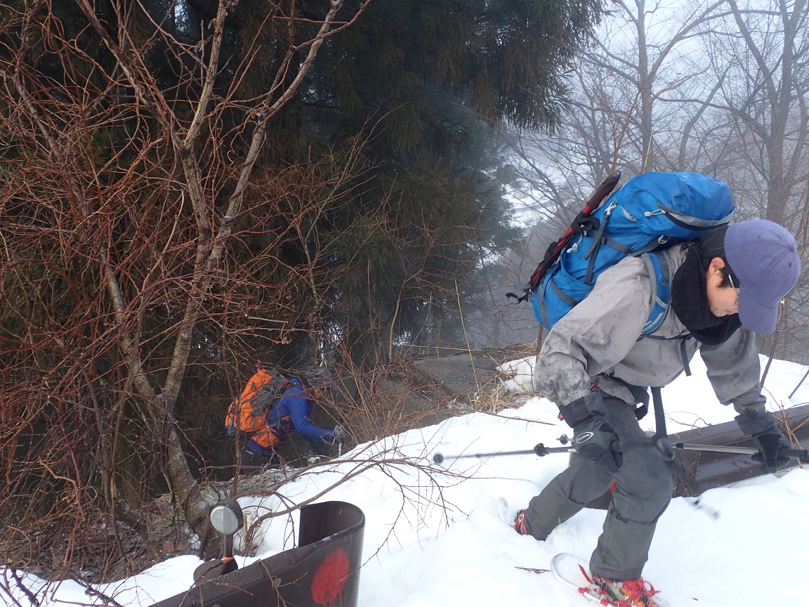 こんな季節にこんなところに来る酔狂な登山者が他にもいるんだと思っていると、「あれ?副館長さん?」と。なんと、わりばしさんだった。わたしも今年の2/4に同じコースを歩いたのですが、たまたまkitayamaさんも同じ日に同じコースを計画されており、ご一緒させていただきました(笑)