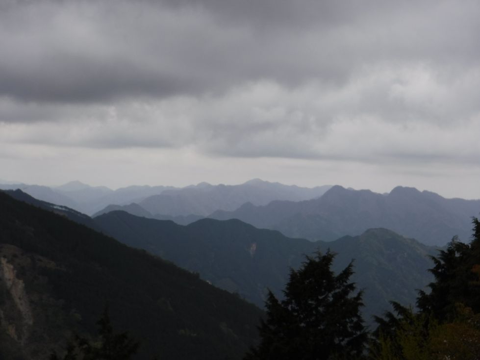正面には局から三峰山に続く稜線。その手前に尖がっているのは三条山だろう。