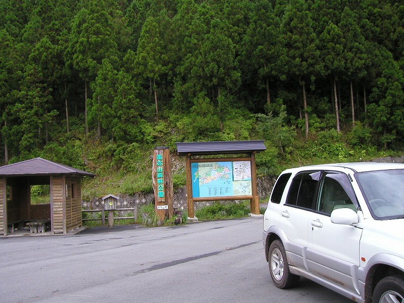 舗装道が終わり、パンクを心配しながら犬戻峡コース駐車地まで車を入れる。