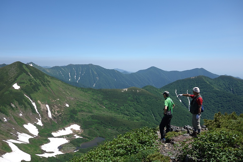 山頂はあまり風がなく、ほとんど雲もない。原始的で広大な360度の眺望を恣にし、ついに日高山脈の中央に立った感動が訪れた。