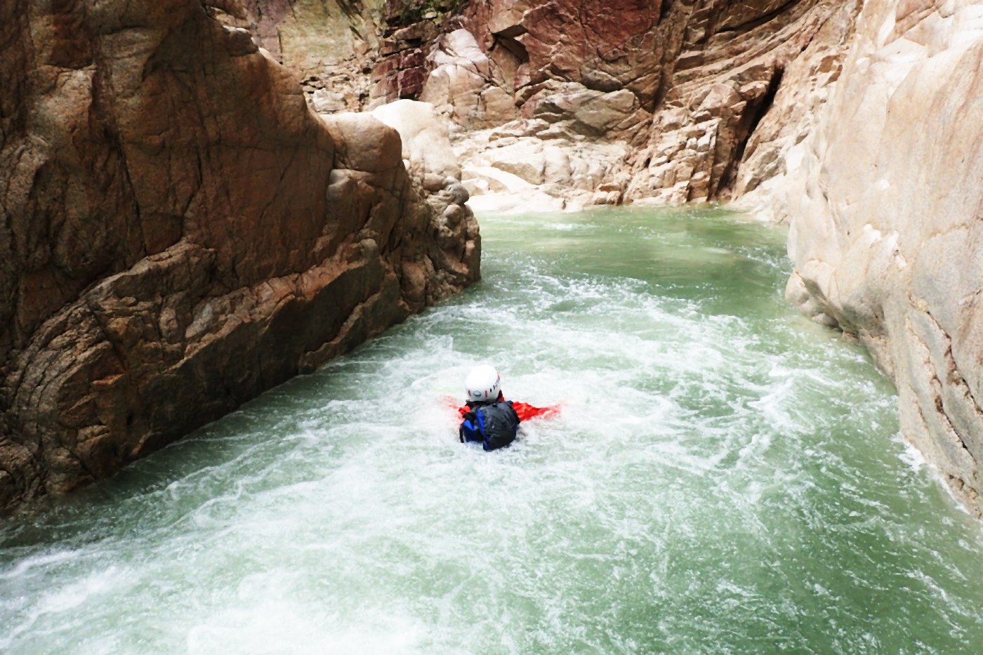 しかし、行きのキャニオングとは違い、流れに逆らっての遡行はなかなか進まない。