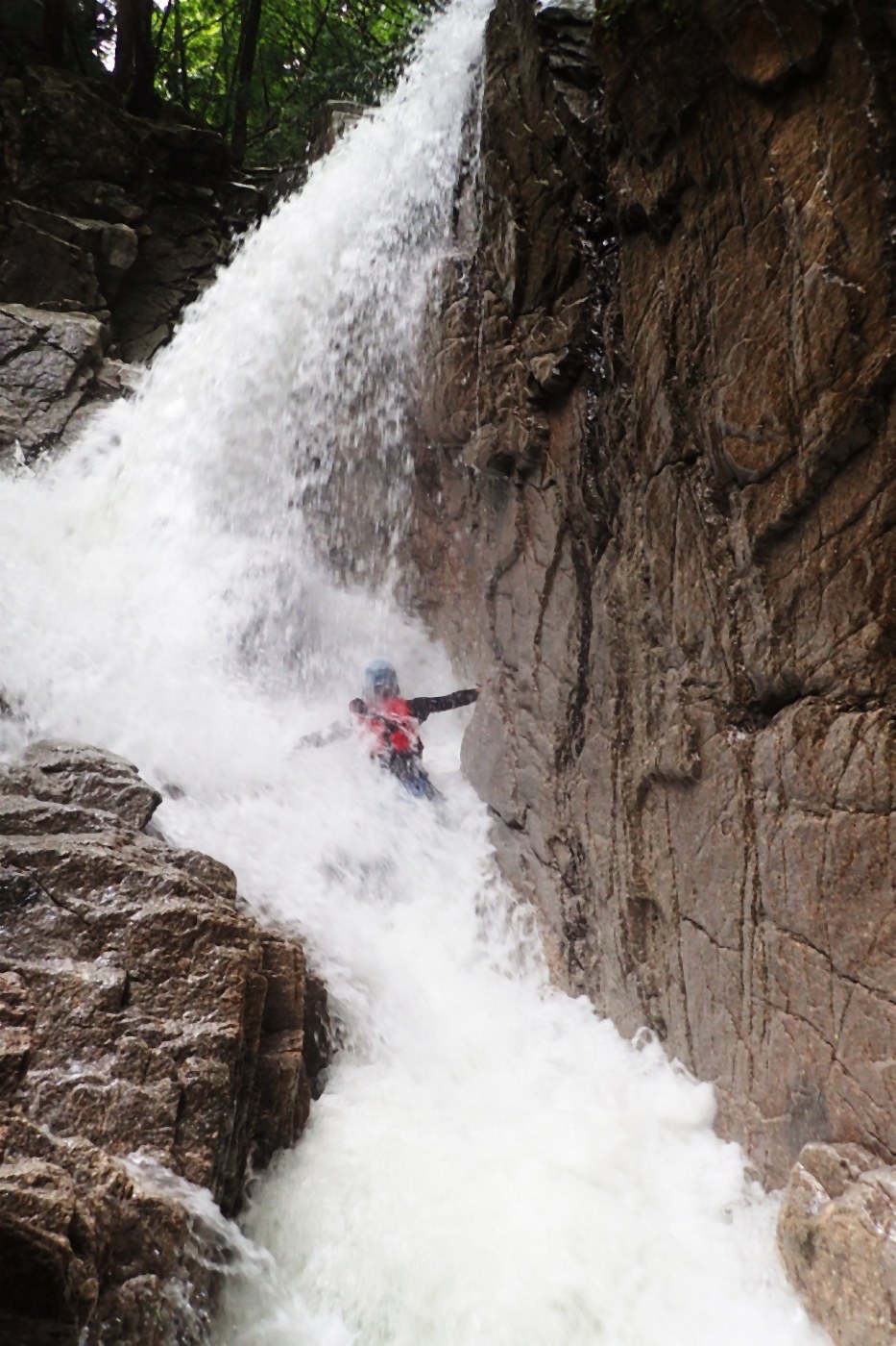 いつもスライダーで賑わう七丈滝も、大渦巻いてた為、縁からポチャンと飛び込む。