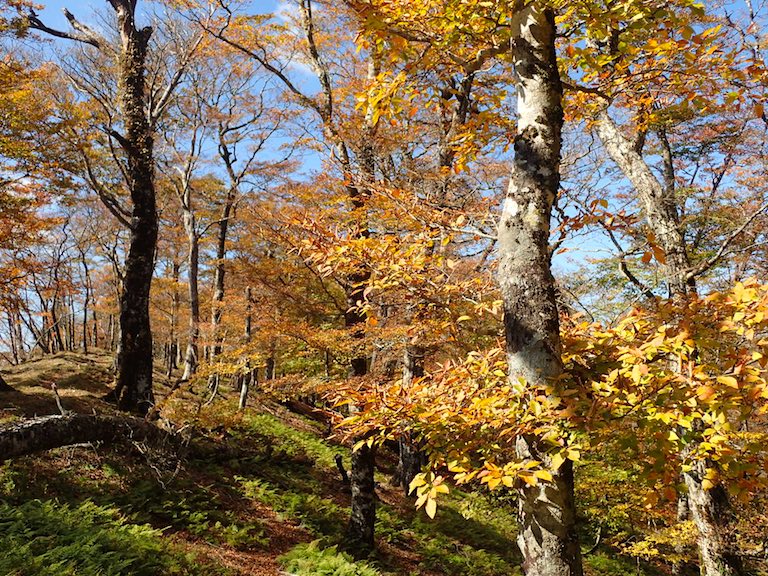 グーさんの写真では赤があったけど、登山道はもっぱら黄色とだいだい色。赤色は少ない。