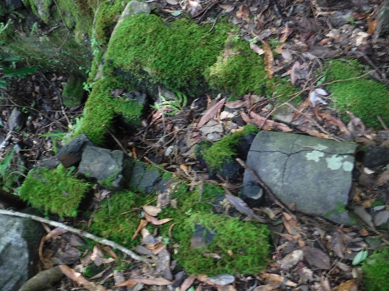 林道終点の広場には耐熱レンガが積み上げられている。広場の山側には石積みが2段あり掘り返すとここからは戦前のサクラビールや大日本ビールのビンに皿や茶わんなどの陶磁器が出て来た。ただ、このあたりは最近まで木材の集積場として使われていたようでウインチのワイヤー等が残されており終点広場のあたりは戦後のビールやジュースビン等が多い。生活痕からして大正時代の飯場は右岸の石積みの上にあったようだ。