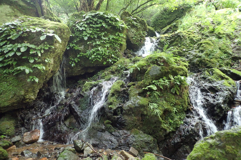 った滝だった。ここからしばらくは谷全体が苔で覆われたような渋い渓相が続いた。カツラの巨木などもあり、