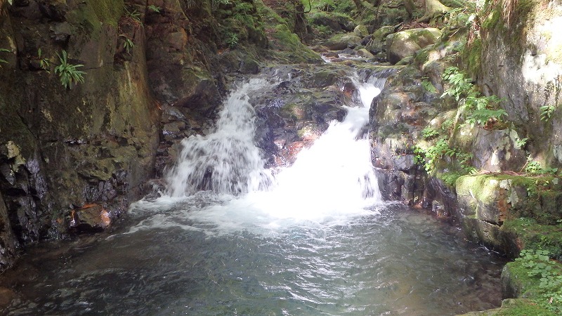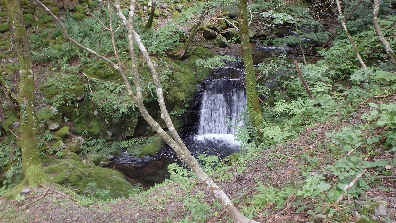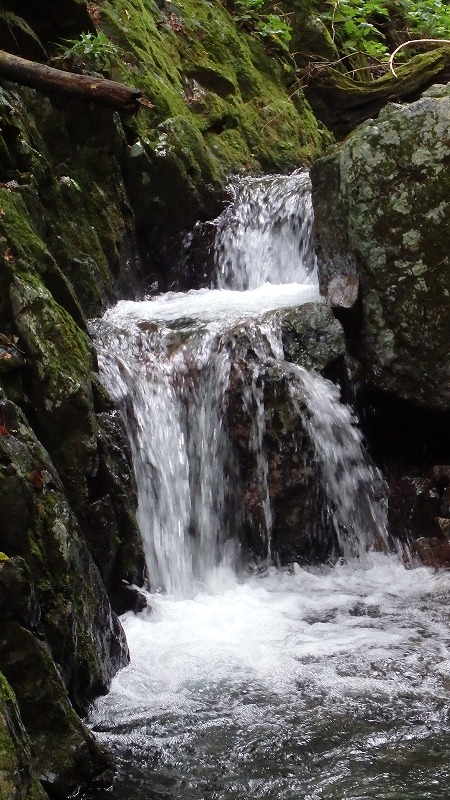 出合には2mほどの滝が白波を立てている。右横から上がると、その奥にもちいさな斜瀑が誘ってくれる。まだ8時半をまわったところ。もう少し進んでみましょう。